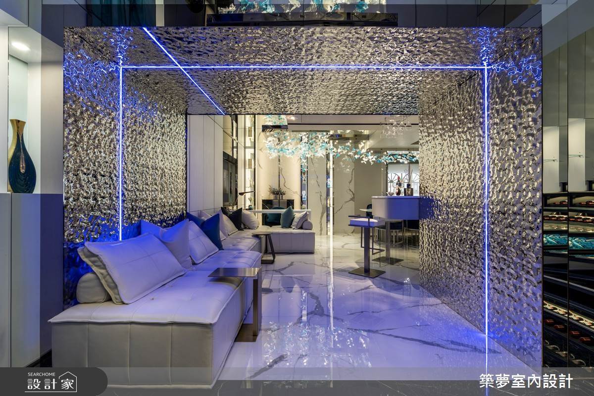 天花鏡面挑高延伸視覺尺度,30坪混搭宅以金屬與特殊漆營造質感層次