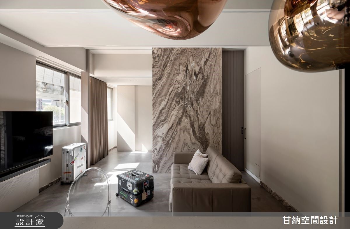 天花鏡面挑高延伸視覺尺度,30坪混搭宅以金屬與特殊漆營造質感層次