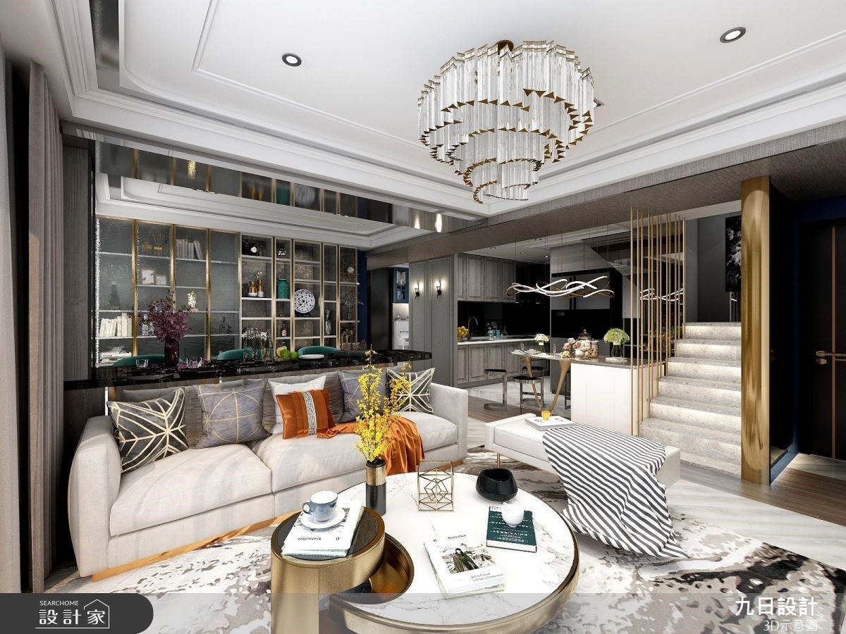 天花鏡面挑高延伸視覺尺度,30坪混搭宅以金屬與特殊漆營造質感層次