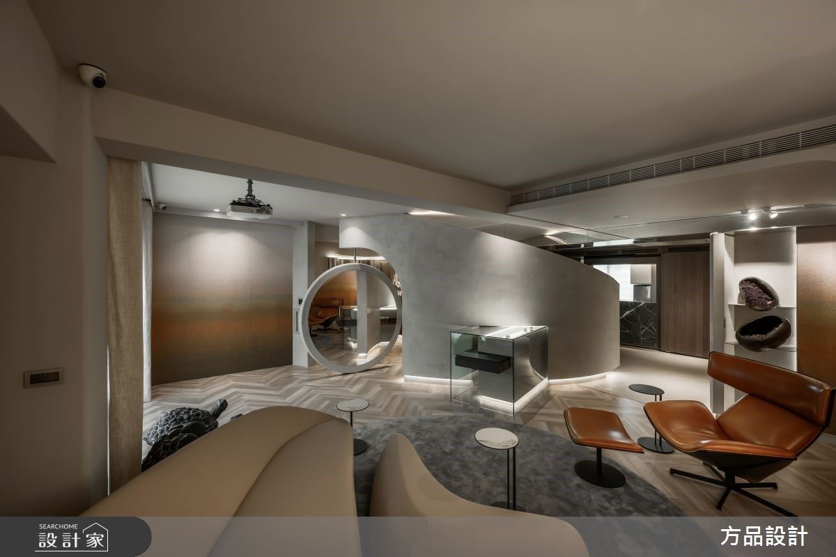 天花鏡面挑高延伸視覺尺度,30坪混搭宅以金屬與特殊漆營造質感層次