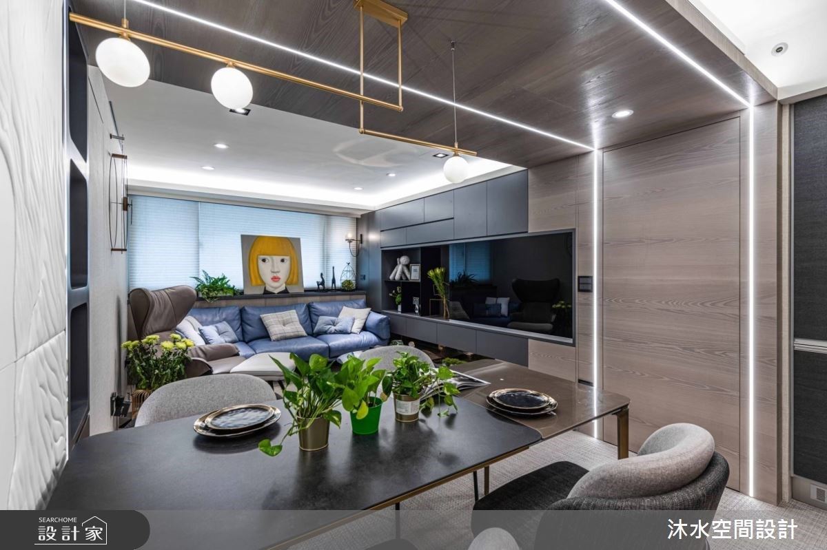 天花鏡面挑高延伸視覺尺度,30坪混搭宅以金屬與特殊漆營造質感層次