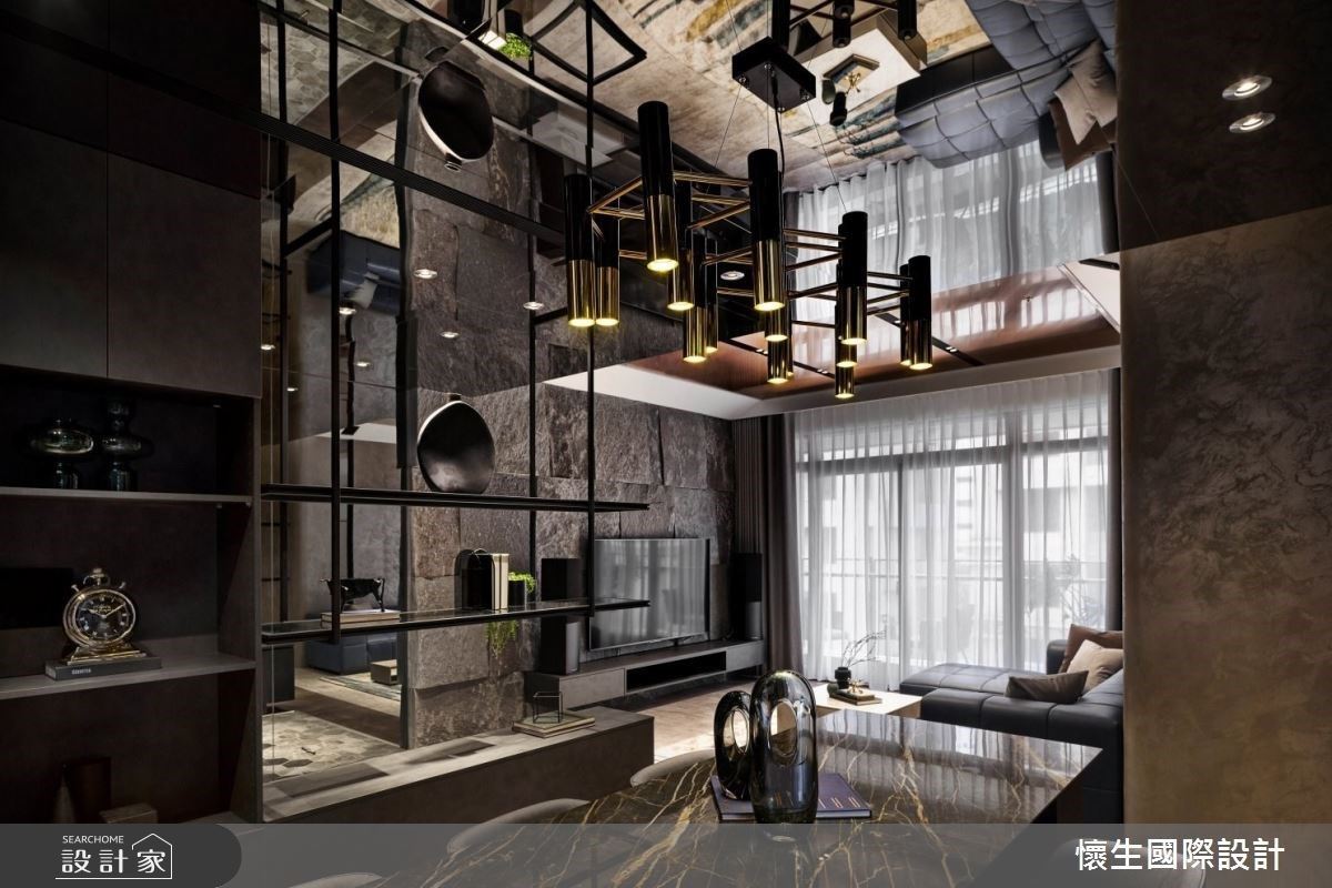 天花鏡面挑高延伸視覺尺度,30坪混搭宅以金屬與特殊漆營造質感層次