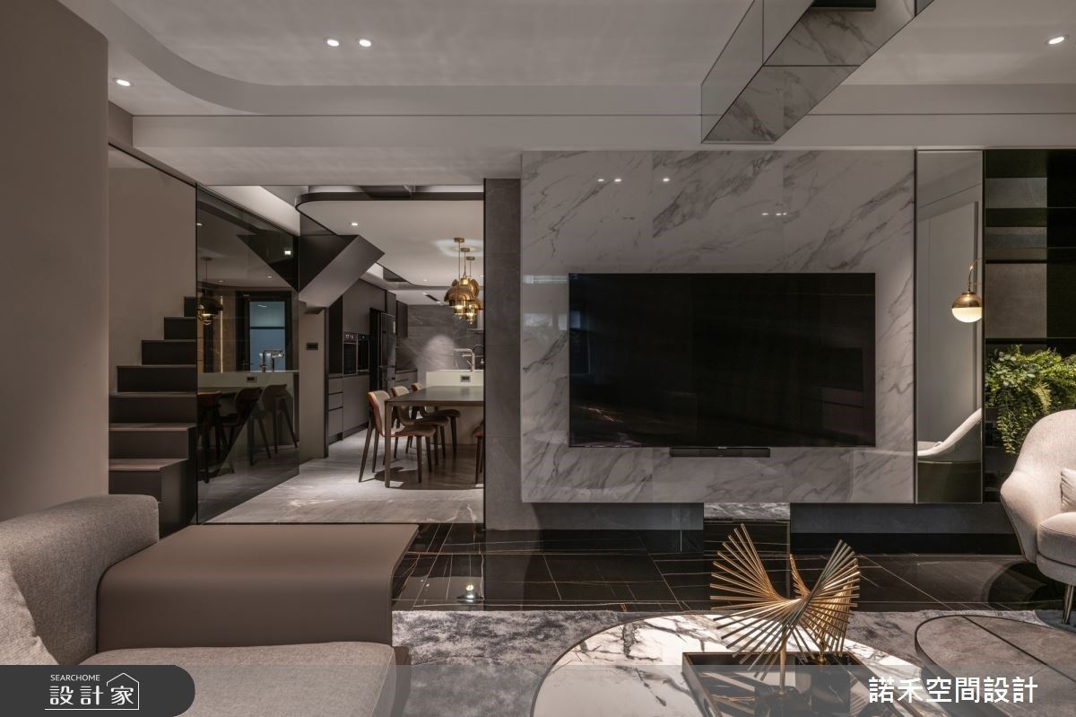 天花鏡面挑高延伸視覺尺度,30坪混搭宅以金屬與特殊漆營造質感層次