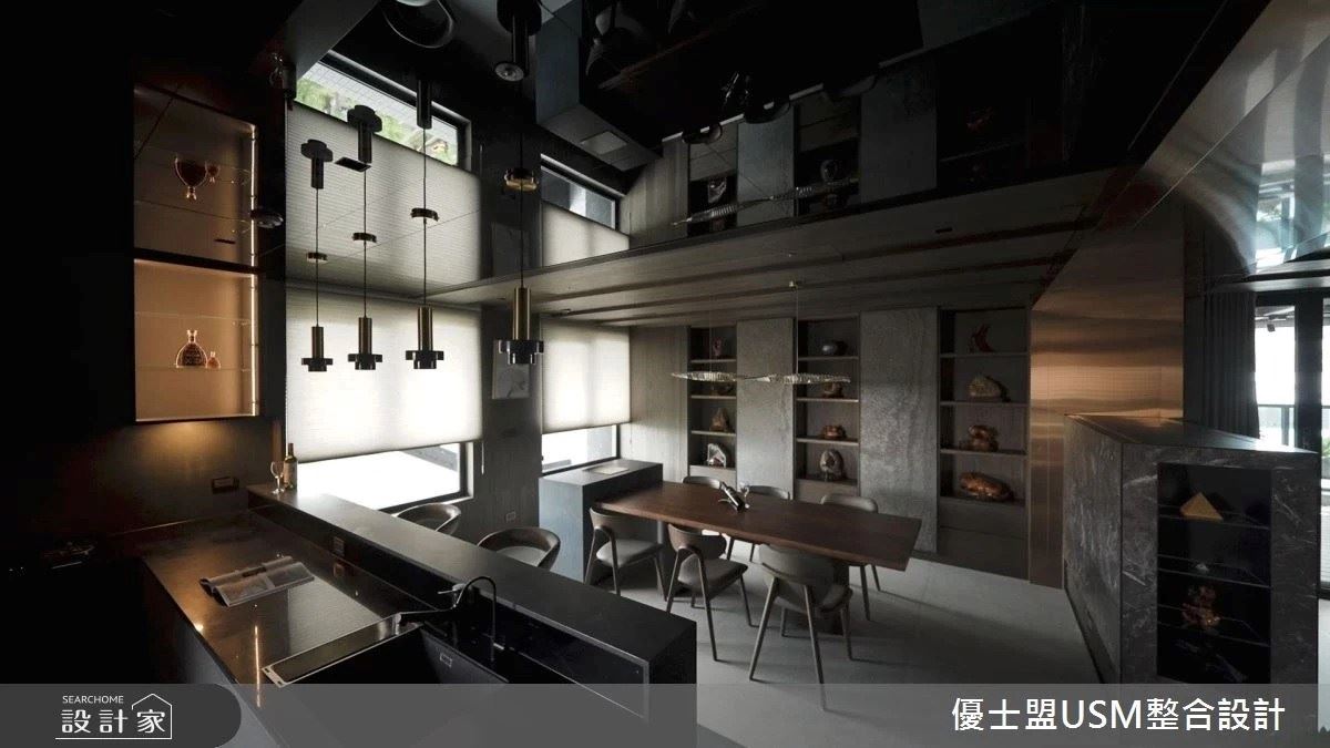 天花鏡面挑高延伸視覺尺度,30坪混搭宅以金屬與特殊漆營造質感層次