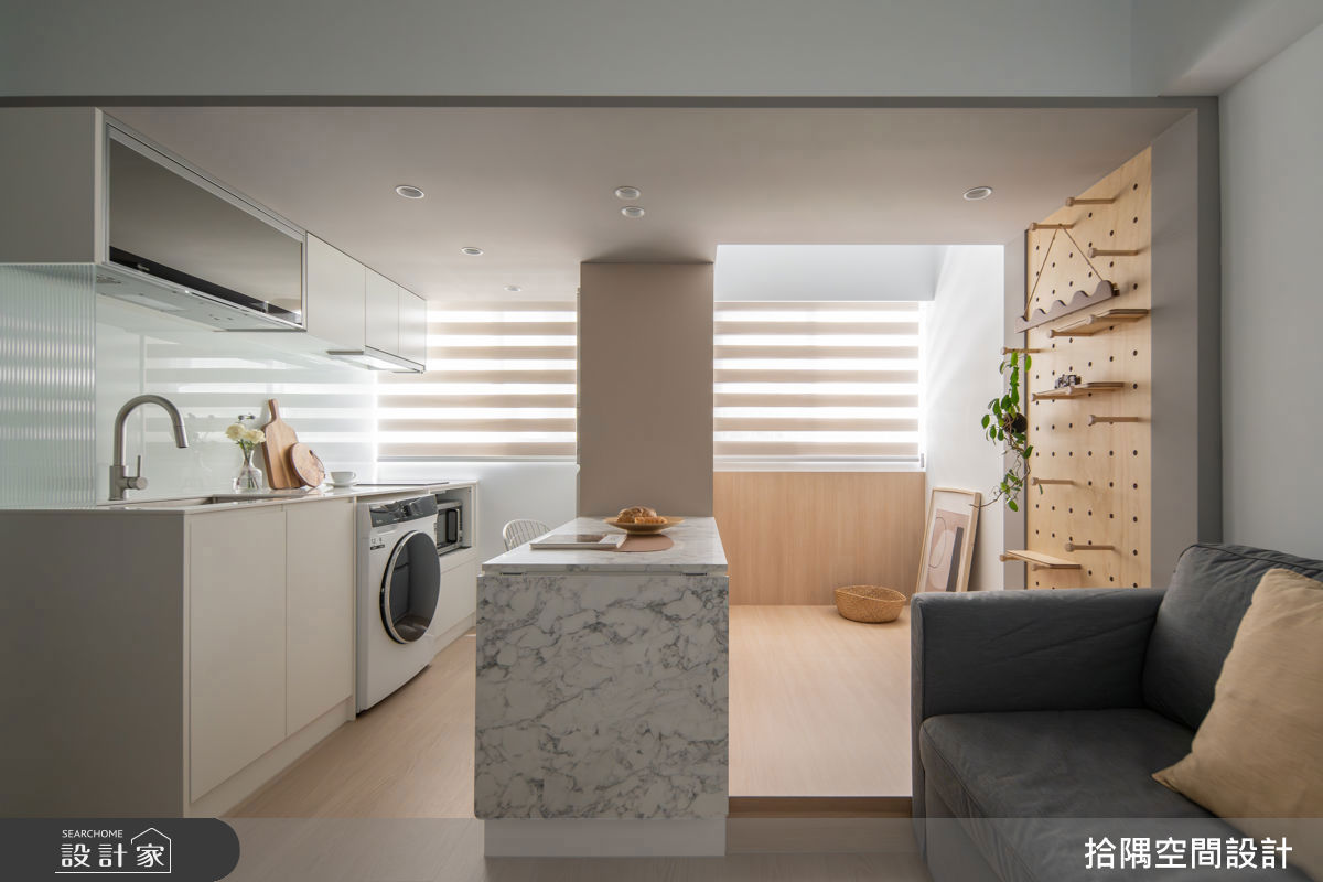 台北市 8 坪老屋翻新典範|架高臥榻、折疊中島與圓弧天花,解決小宅壓迫的極效機能設計