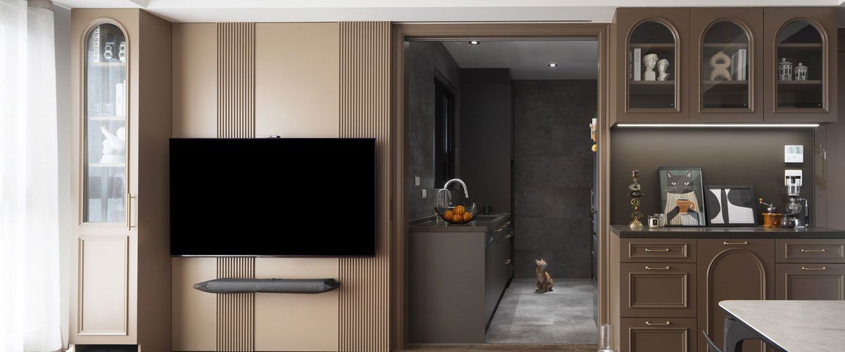 18坪美拉德風,以咖啡色系開放式客餐廳營造溫潤居家氛圍