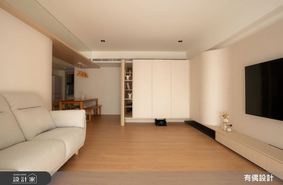 35 坪新成屋的溫柔宣言!安全圓角設計 X 玄關旋轉鞋架,四房變出三倍儲藏量打造療癒現代混搭宅