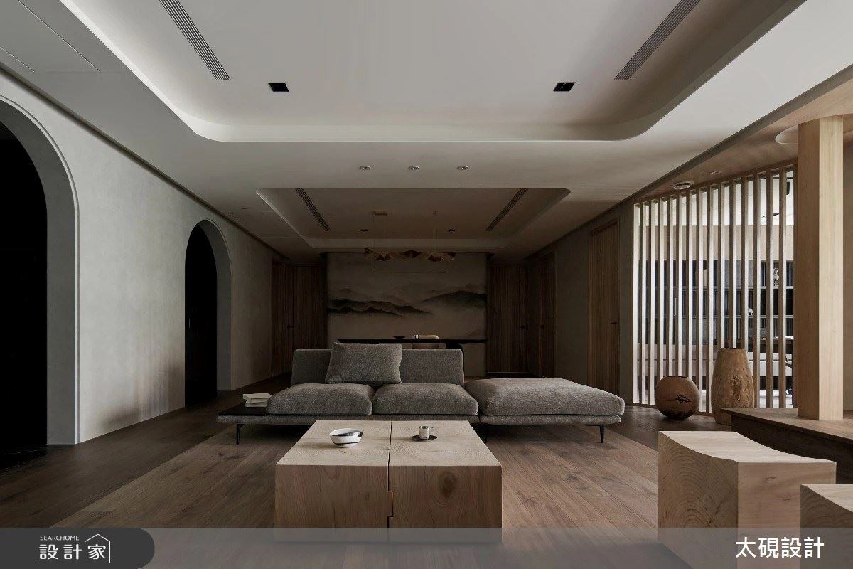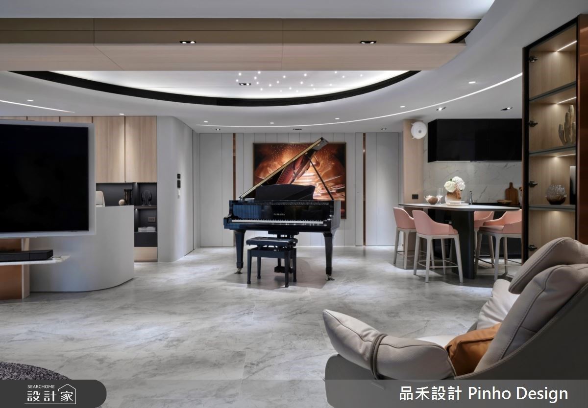 毛胚屋客廳訂製成私人音樂廳!環形天花與弧形動線設計,讓悠揚琴聲迴盪 55 坪奢華風宅邸