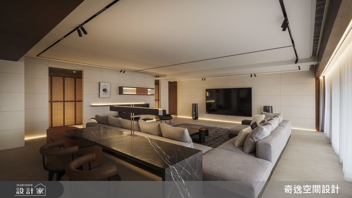 用光影雕塑空間!竹北 60 坪輕奢風住宅,琥珀奢石主牆搭配 Venicem 吊燈,定義低調不張揚的生活哲學