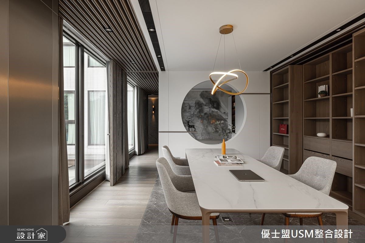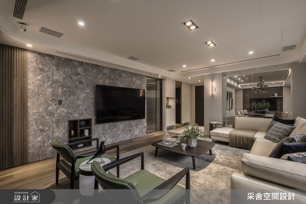 用光影雕塑空間!竹北 60 坪輕奢風住宅,琥珀奢石主牆搭配 Venicem 吊燈,定義低調不張揚的生活哲學