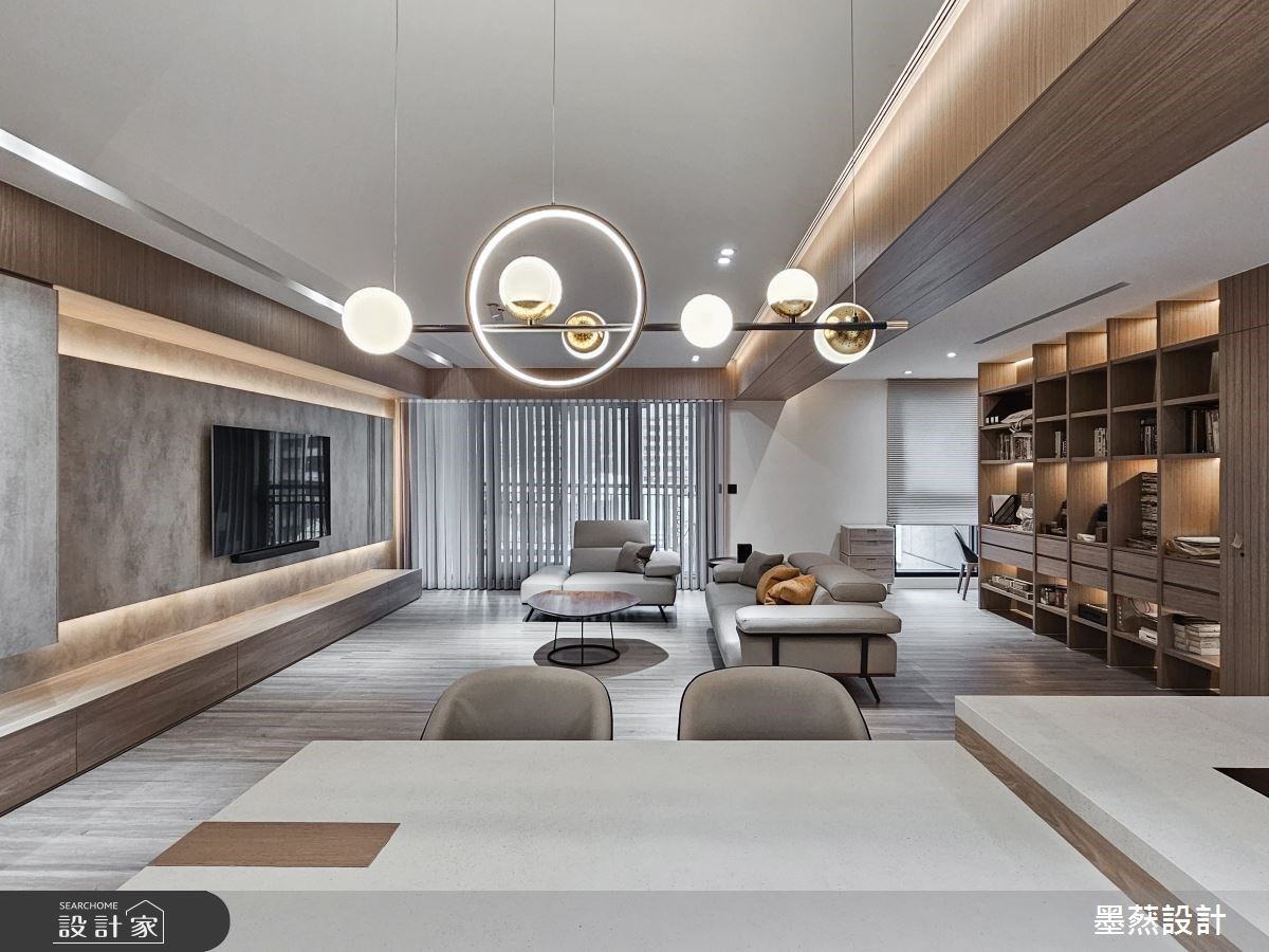 用光影雕塑空間!竹北 60 坪輕奢風住宅,琥珀奢石主牆搭配 Venicem 吊燈,定義低調不張揚的生活哲學