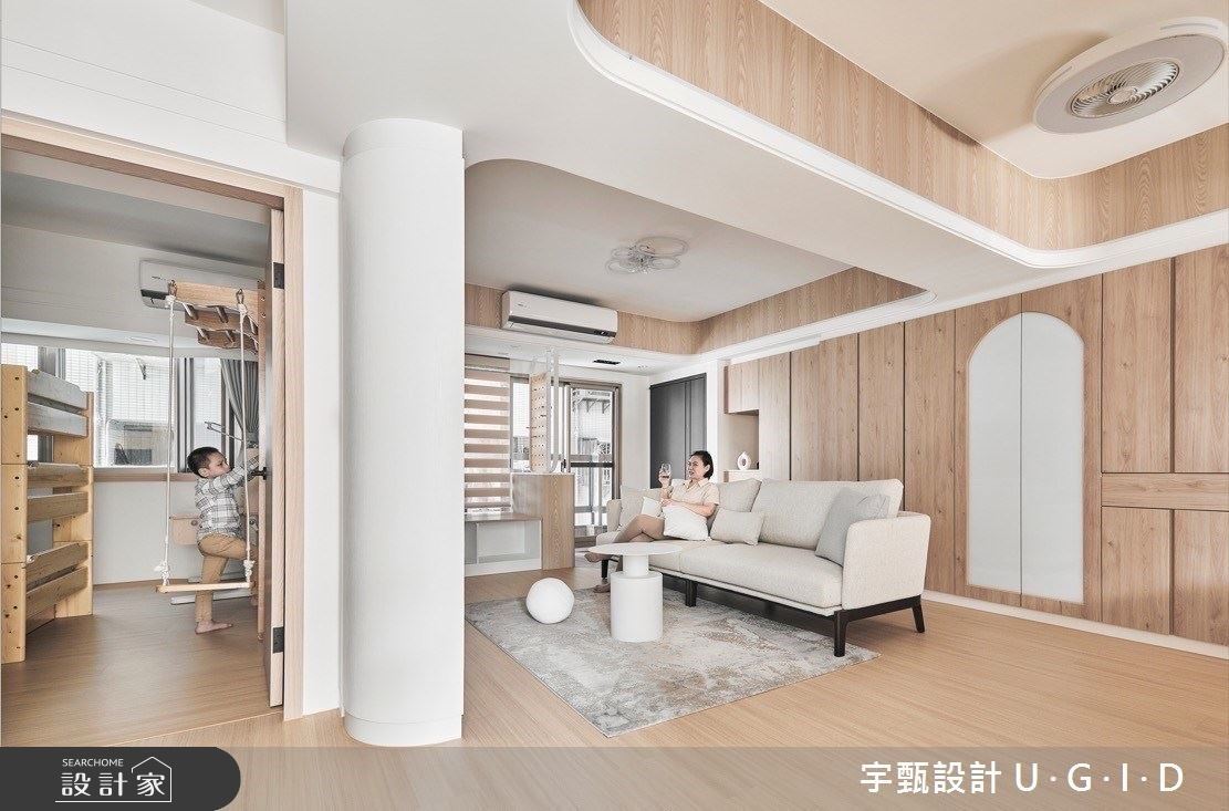 35坪的侘寂之美,保留原柱體自然紋路,與藝術塗料的碰撞,給一家三口擁有上了濾鏡的家!