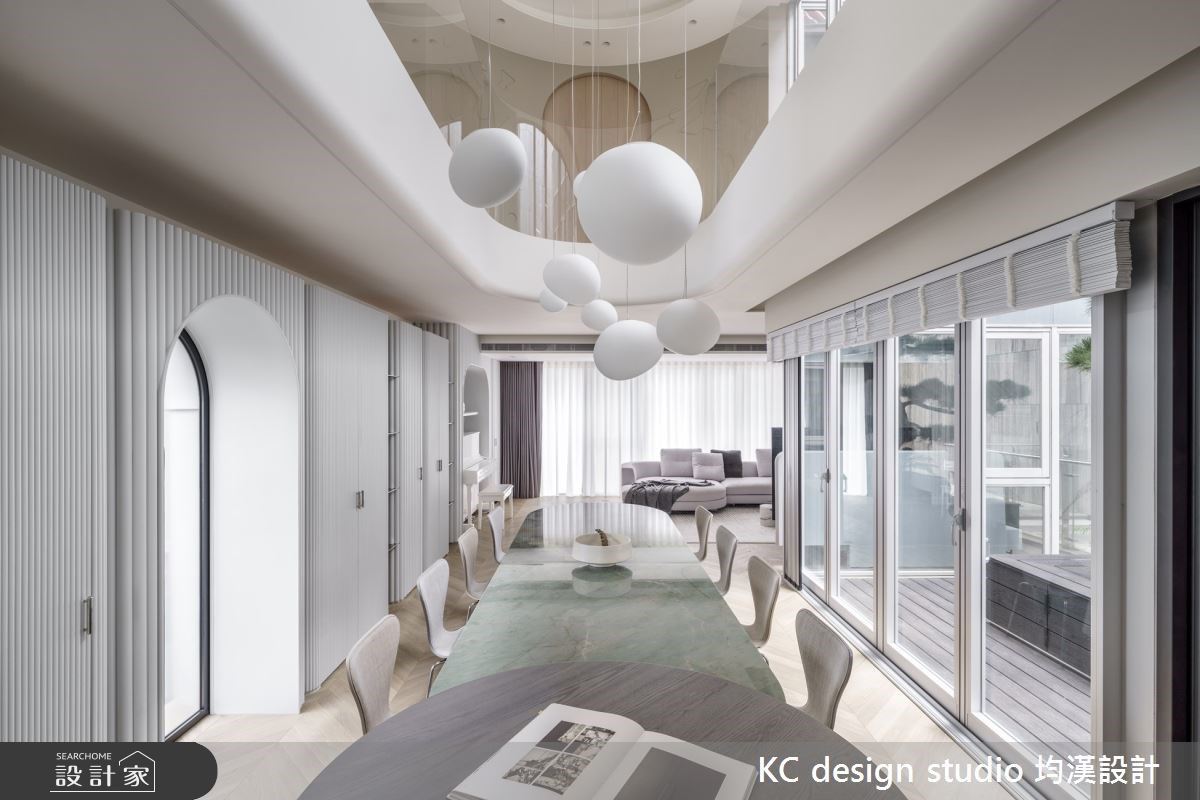百坪透天創造三代同堂生活的自由式!弧形設計開啟日光天井,寢食分離打造大人與孩子共樂遊樂場