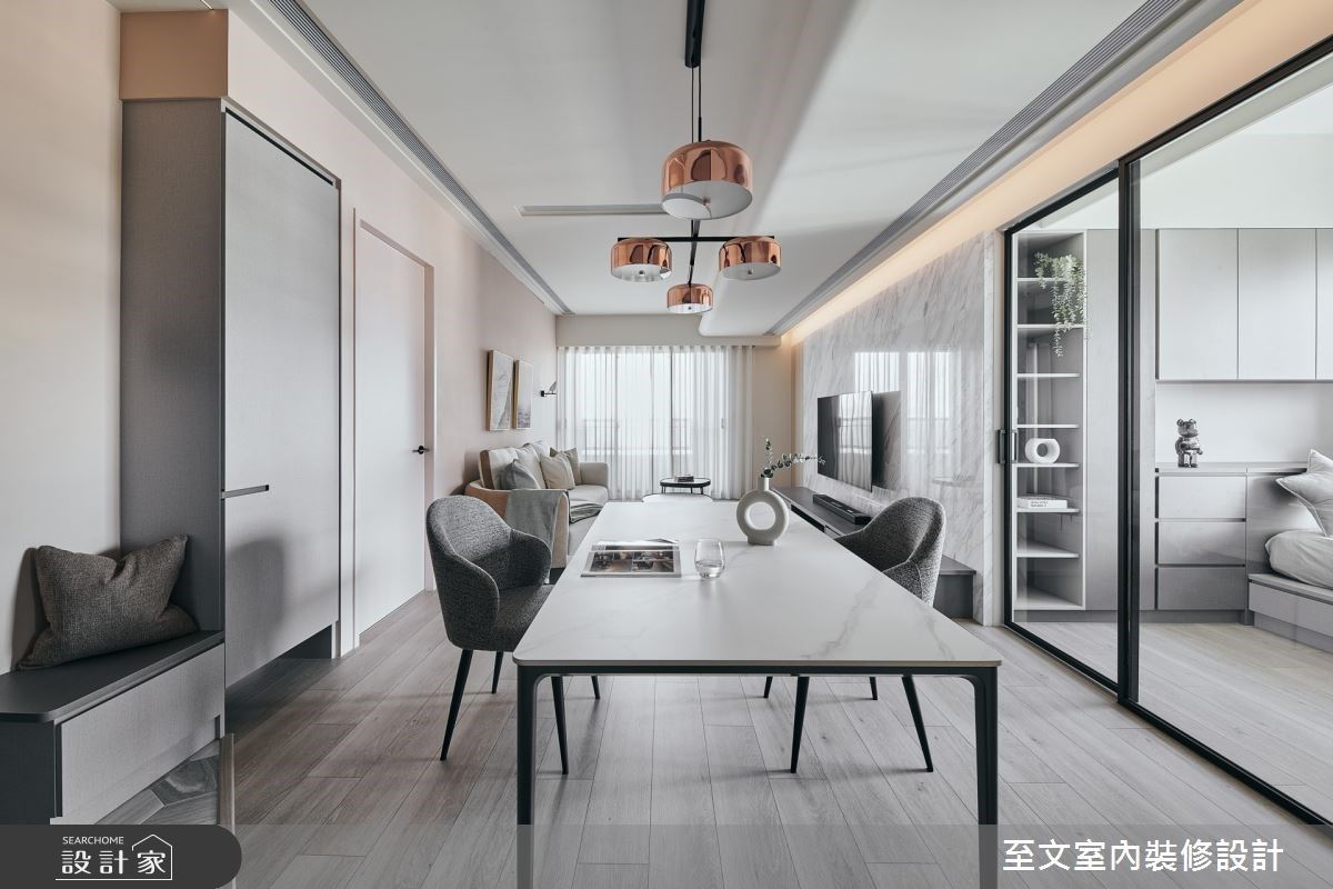 退休就該好好享福!29 坪現代宅以典雅粉藕增添毛胚屋春色,玻璃帷幕迎將 101 窗景盡收眼底