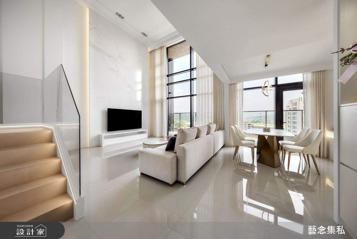 以白為題的藝術透天宅,彩繪大理石紋和造型光帶展現豪宅對精緻與高雅的追求