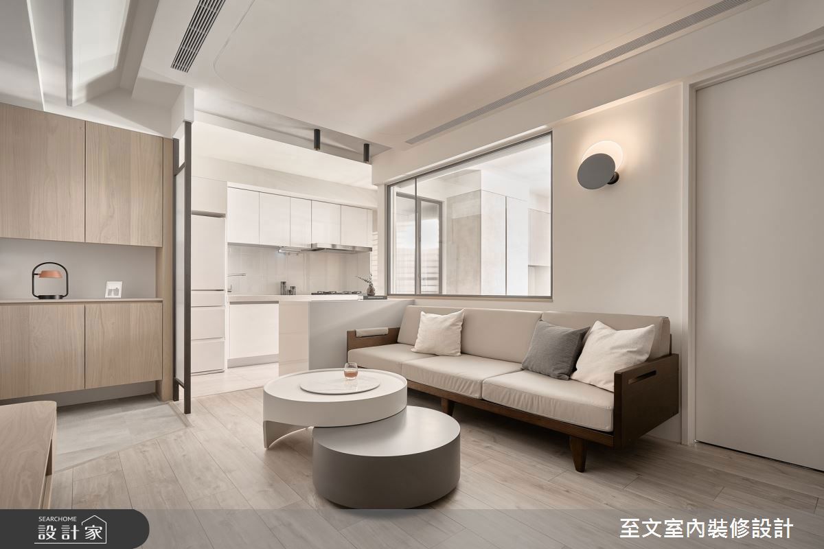 淡奶茶色的溫柔包覆,15坪北歐宅以二字形廚房與半透明屏風創造清透氛圍!