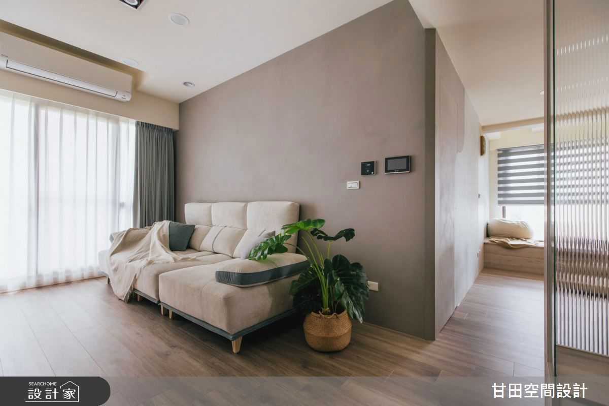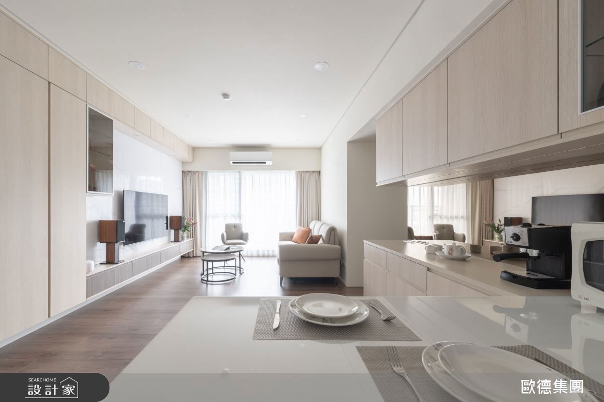 微型退休宅的舒適提案:12 坪預售屋預先客變,活動電視牆打造適量收納,弧形設計讓視覺體感安全升級