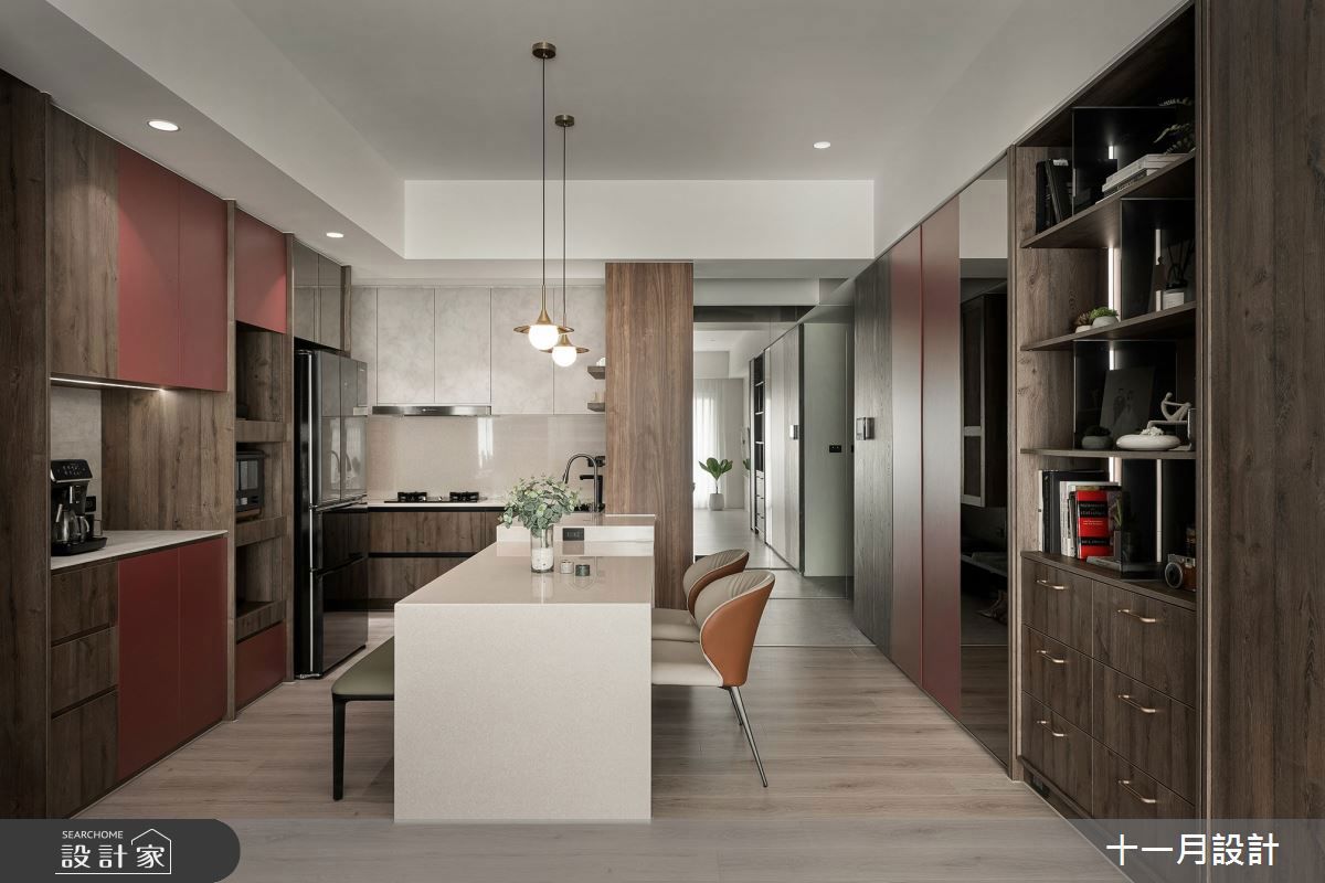 16.5坪現代風小坪數,滑門玄關設計、半開放式廚房與多功能書房一次到位