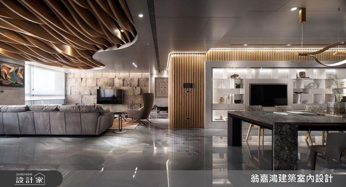 光帶電視牆X大型餐桌X漸層立面收納,都會裡享受溫潤微奢人文生活