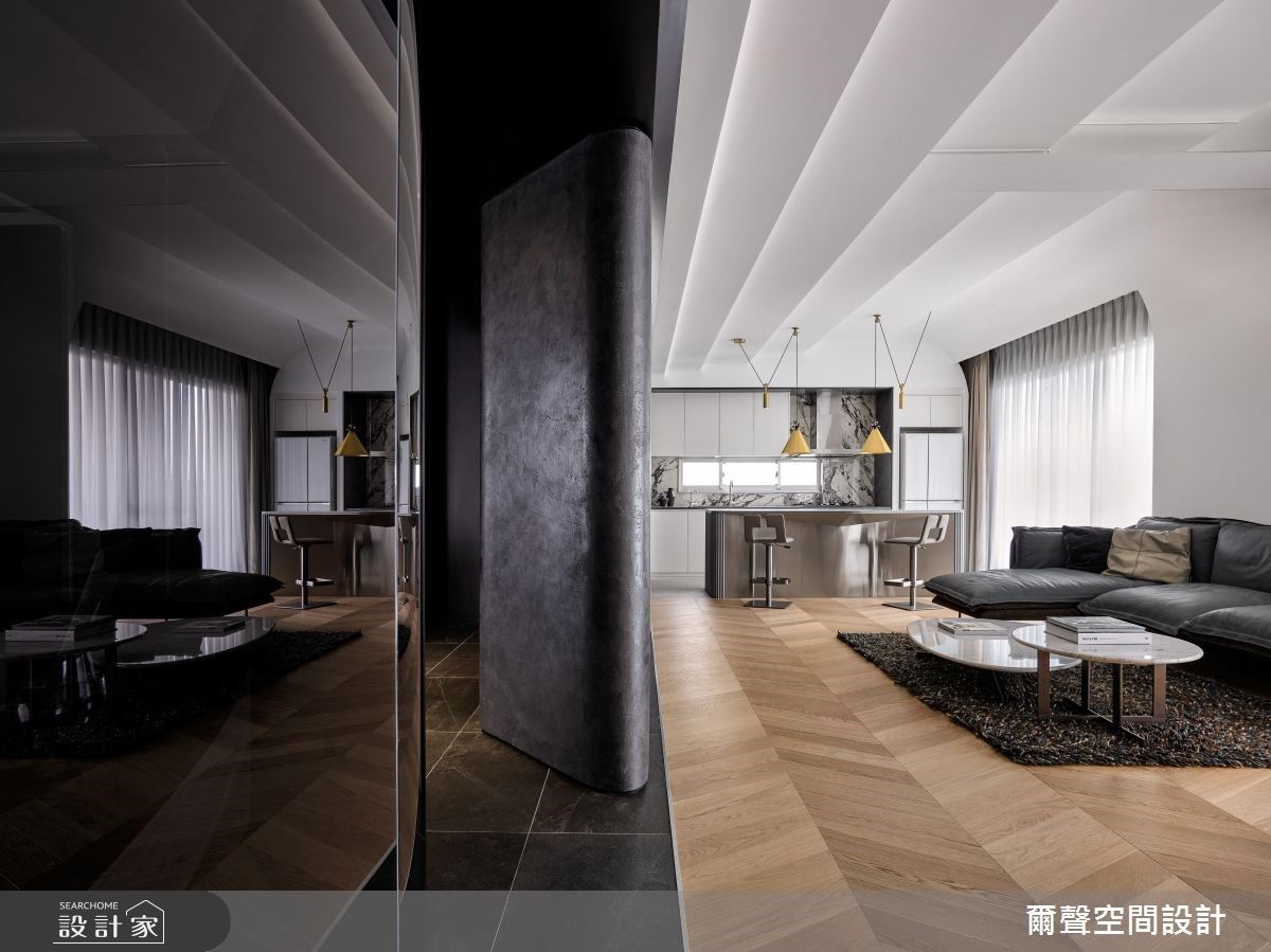 天花鏡面挑高延伸視覺尺度,30坪混搭宅以金屬與特殊漆營造質感層次