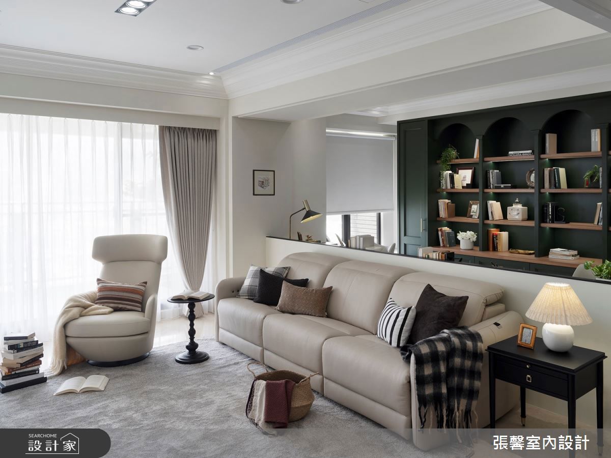 搭上空姐的品味班機!42 坪內斂美式風以墨綠書牆與壁爐點綴,讓家如頭等艙般舒適優雅