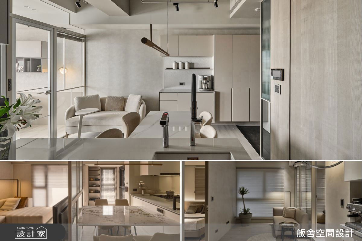 16.5坪現代風小坪數,滑門玄關設計、半開放式廚房與多功能書房一次到位