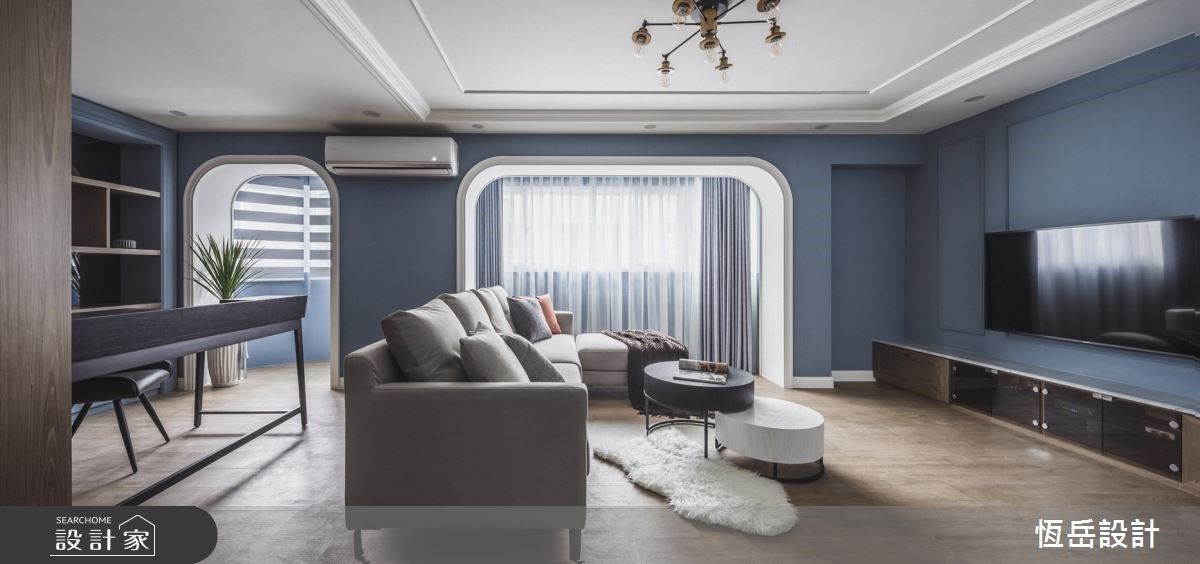 徜徉光影之間!老屋化身質感灰藍美式宅,浪漫美式拱門串起信仰與聚會!