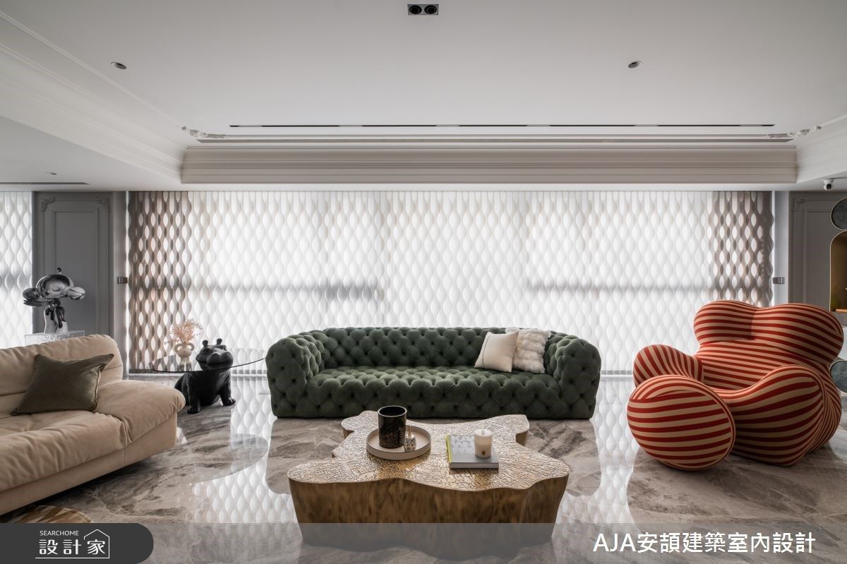 遠眺都會城市的夜色,透光大理石+造型家具襯托百坪豪邸的時尚魅力