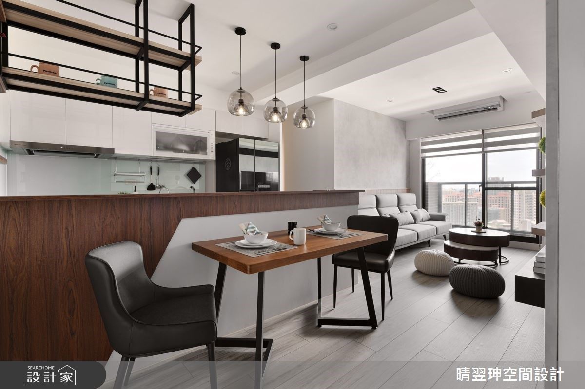 礦物塗料渲染藝術主牆、微調格局打造時髦吧台!桃園 23 坪現代宅讓年輕夫妻活成時尚美劇主角