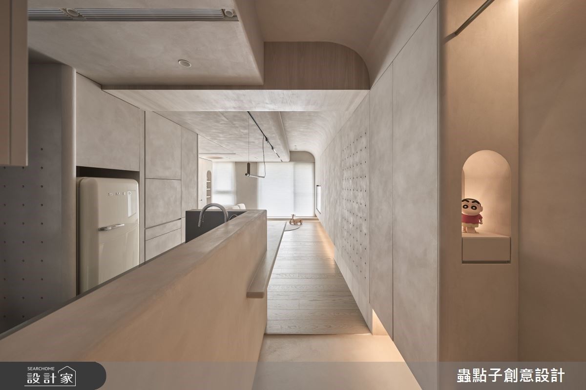 16.5坪現代風小坪數,滑門玄關設計、半開放式廚房與多功能書房一次到位