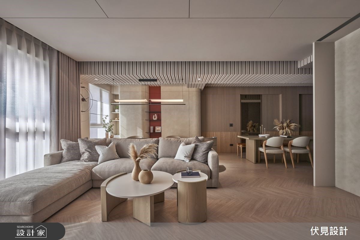 木質與暖色模擬午後暖陽,開放式客、餐廳與書房建構現代人文日常