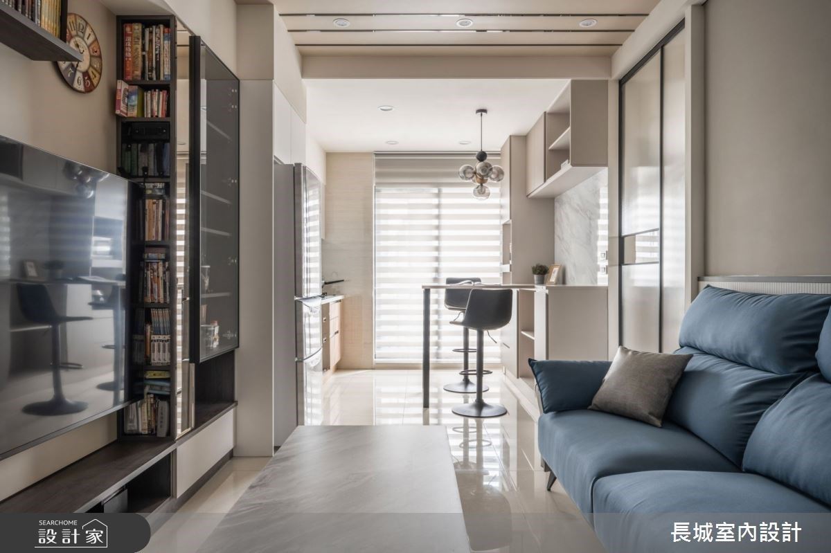 22坪現代宅再放大!鏡面與玻璃引光術,餐櫃延伸中島與餐桌的饗食樂趣