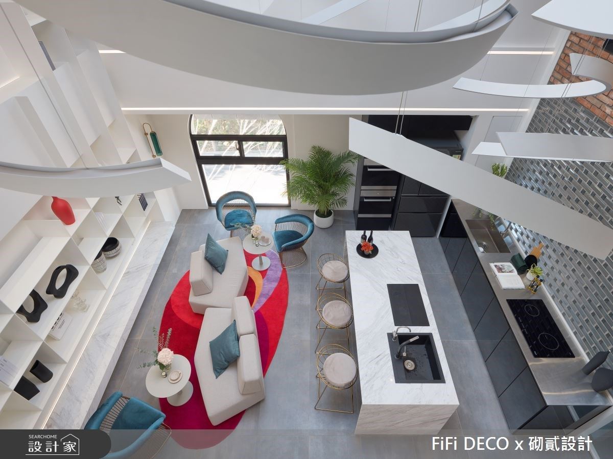 辦公也能體驗家的舒適與溫馨!85坪挑高視野混搭中島吧檯,讓身心開闊自在