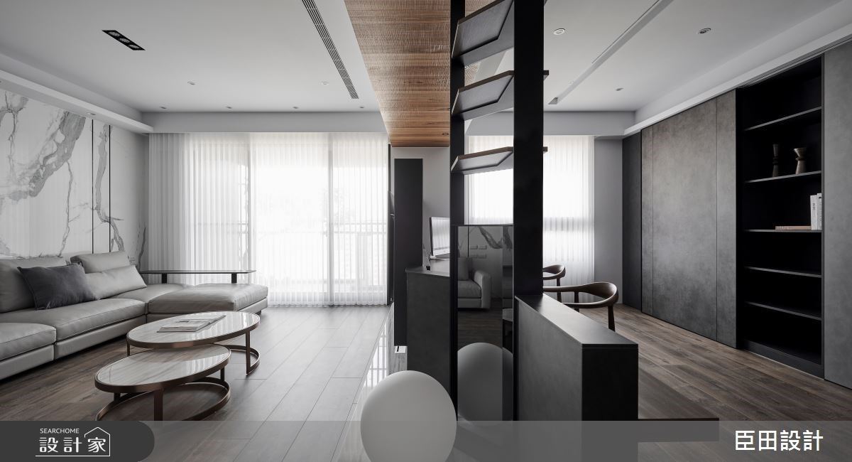 黑白灰的無壓配色法!加入半高電視牆、隱藏收納,打造親子宅的簡約現代風