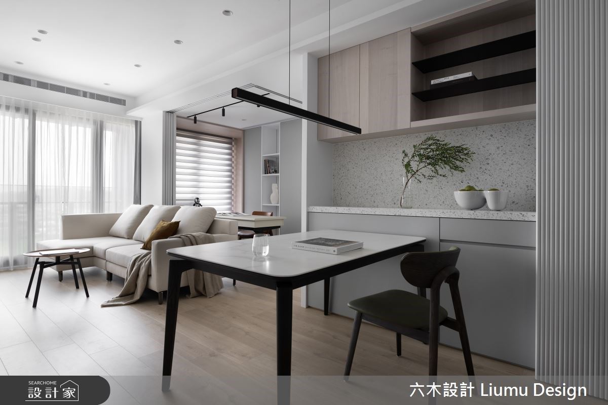 16.5坪現代風小坪數,滑門玄關設計、半開放式廚房與多功能書房一次到位