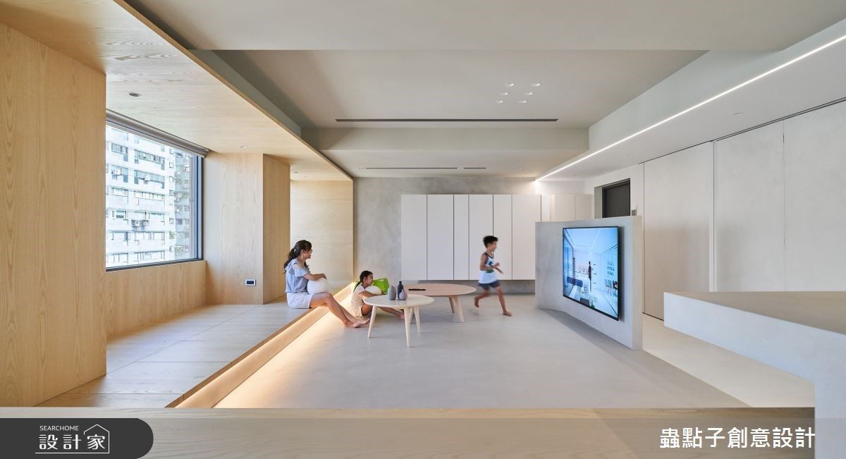 簡約風超長臥榻串聯情感,位移電視牆讓家人盡情玩樂