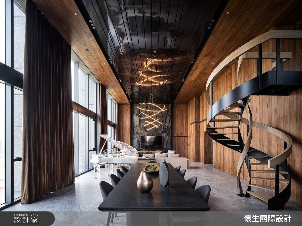 天花鏡面挑高延伸視覺尺度,30坪混搭宅以金屬與特殊漆營造質感層次