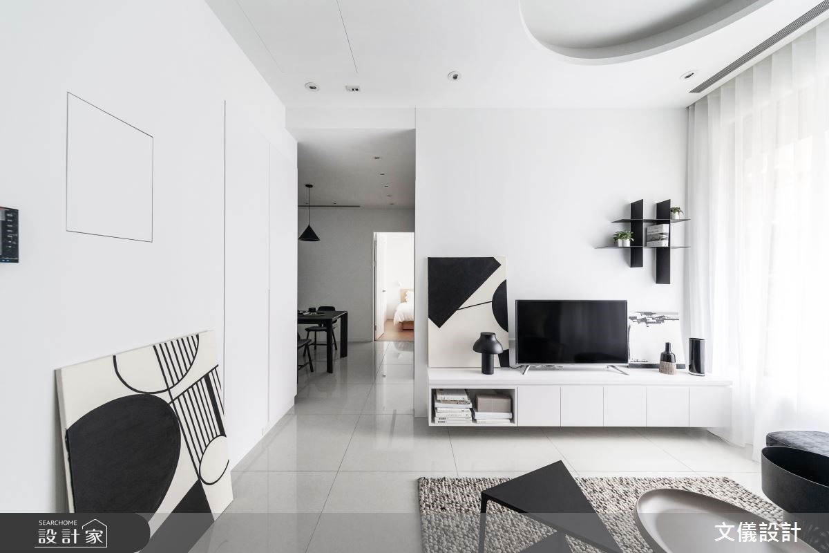 設計師以黑白兩色彩譜畫 27 坪空間,利用鐵件、玻璃、木皮、美耐板等材質,為屋主一家人帶來極簡風格的居家饗宴。
