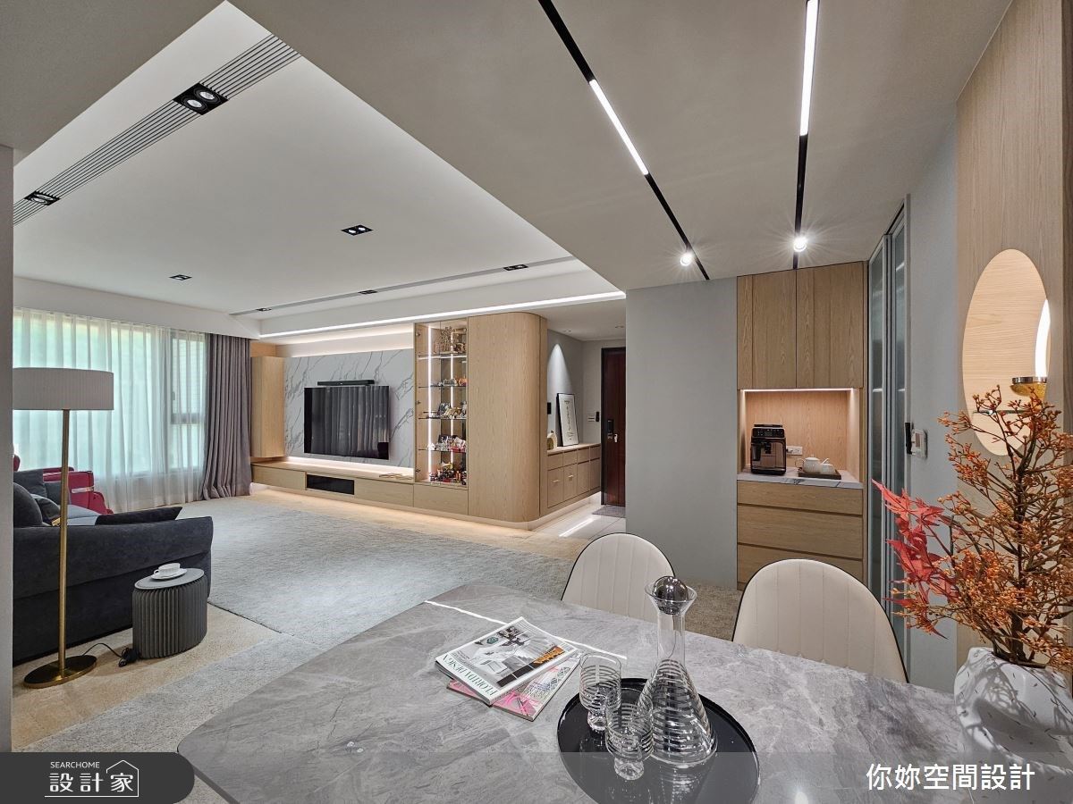 讓信仰成為新家裝潢亮點!24.5 坪複層小宅將神龕鑲嵌於餐廳牆面,客廳伸縮投影布幕建構一家共融生活