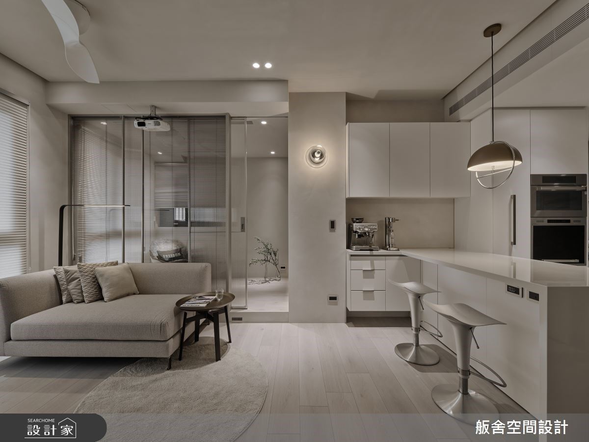 16.5坪現代風小坪數,滑門玄關設計、半開放式廚房與多功能書房一次到位