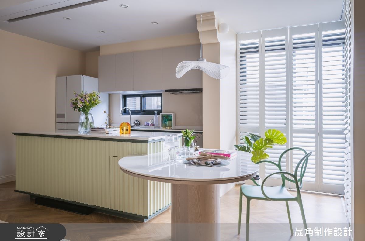 香甜的淺蜜桃橘北歐風!以中島串起生活動線,找出滿分的採光與空間感